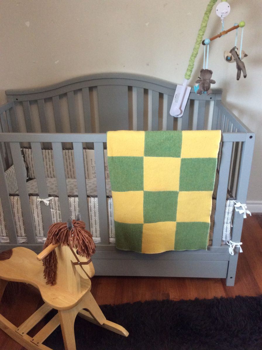 Recycle and reuse. This charming unique wool quilt for baby is made from recycled 100% wool double bed blankets that are worn and have seen better days.The larger quilts are washed in hot, hot water and dried in the hottest setting on the dryer. This shrinks the wool and makes it thicker and warmer. Then they are cut apart and the design made. But best of all, real wool is so lovely for your wee one. It breathes, it’s a natural fabric, and it is recycling which is good for the environment. A win, win for all.